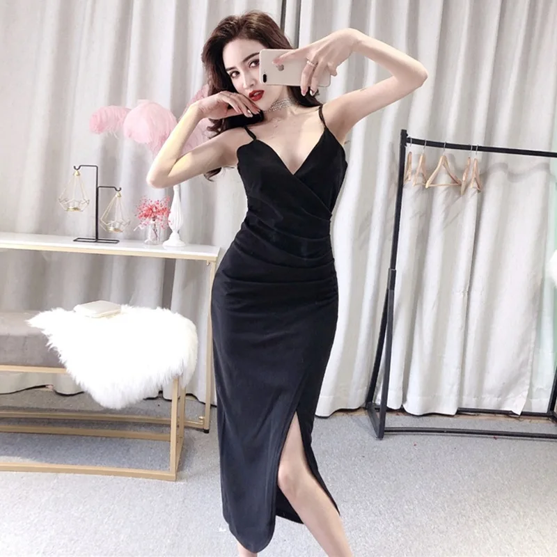 HIGH QUALITY Photo Shoot ~ Careful Machine Sexy Camisole V-neck Waist Hugging Slit Irregular Mid-length Banquet