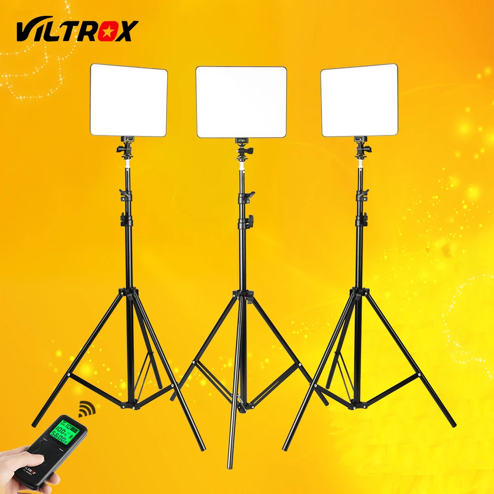 ORIGINAL VILROX 3pcs VL-200T Bi-color Dimmable Wireless remote LED Video Light Panel Lighting Kit+75" Li