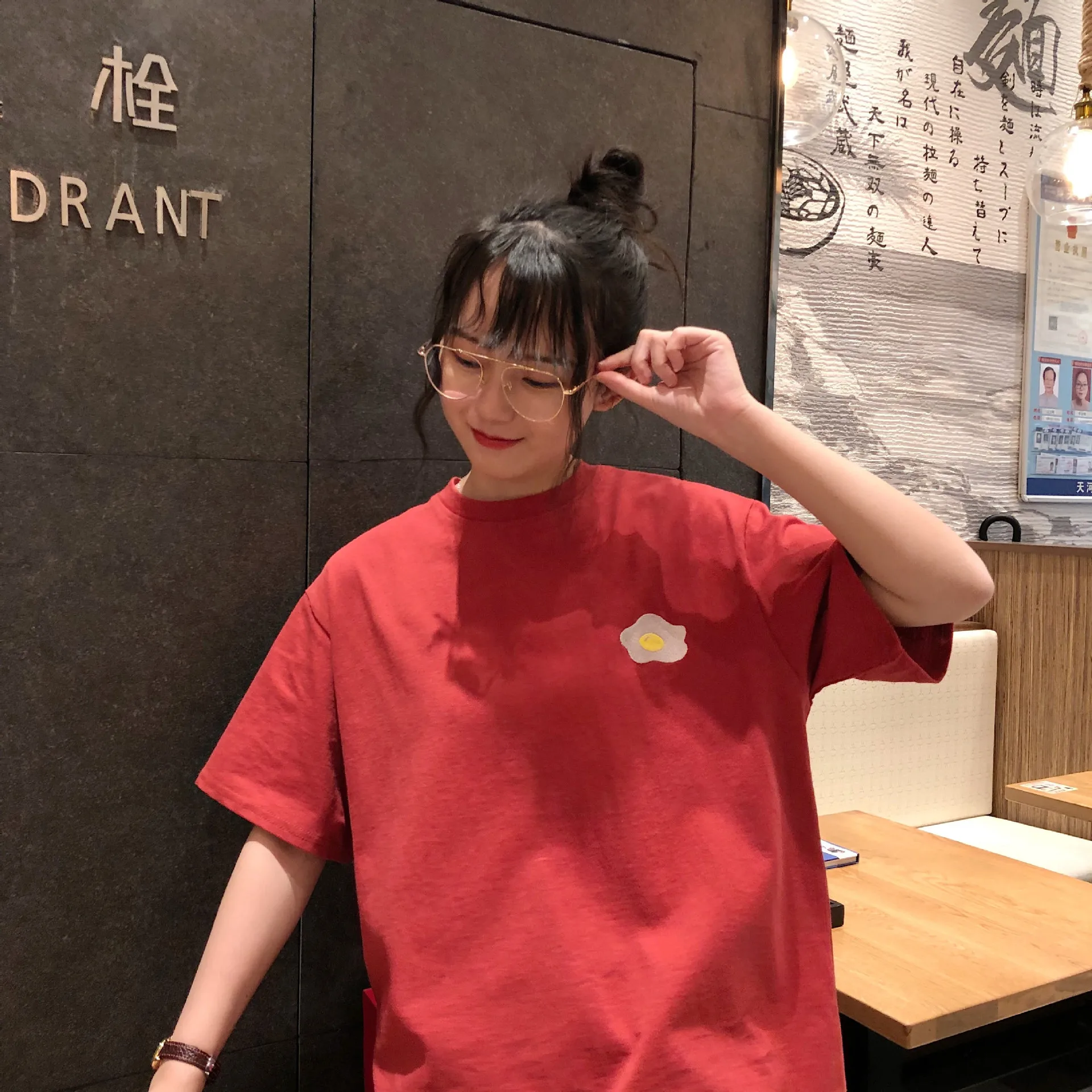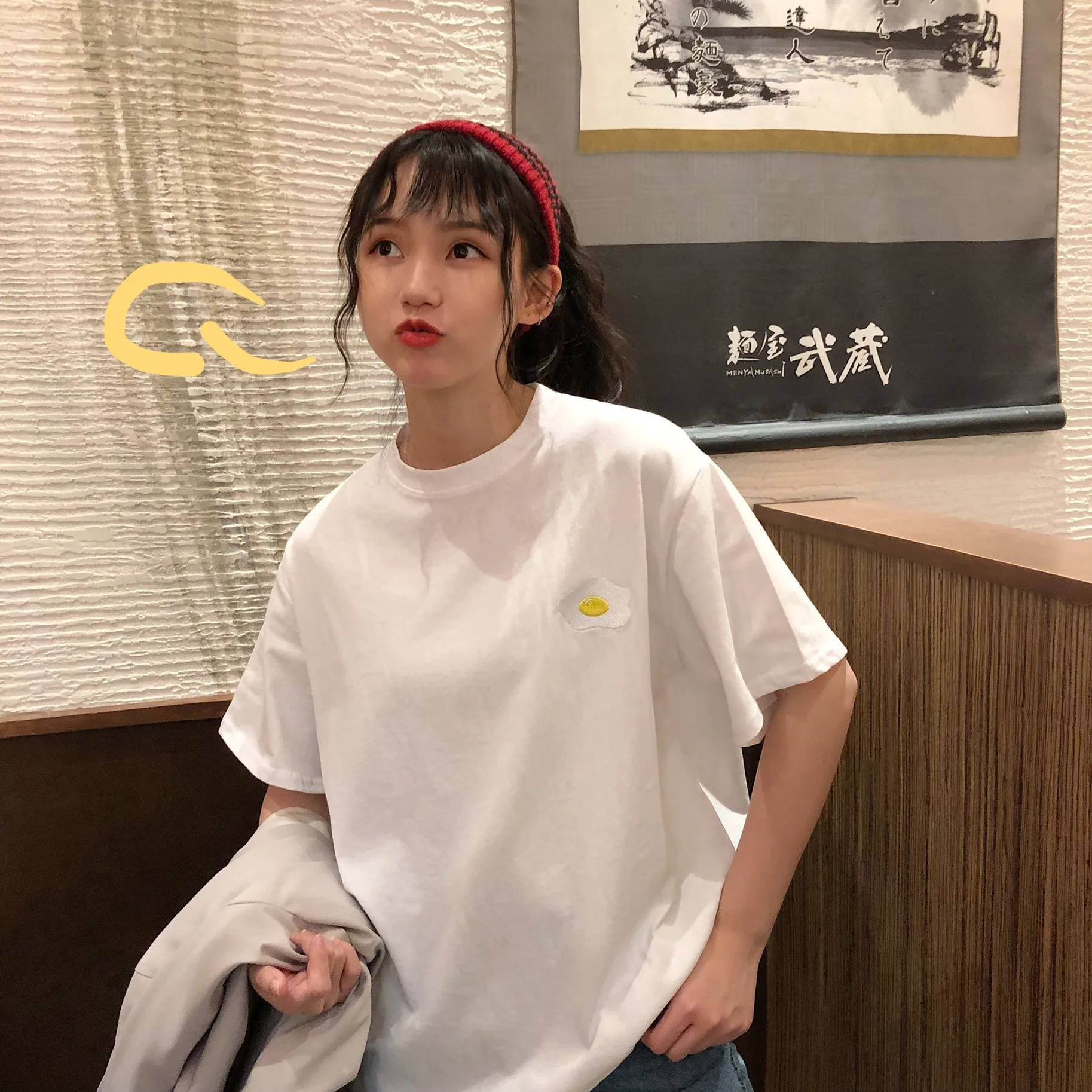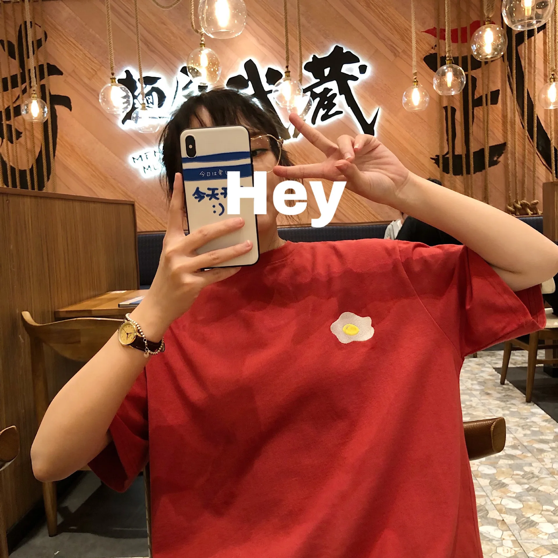 Review Photo Shoot 2019 Summer New Style Egg Embroidered Loose-Fit Versatile BF Short Sleeve T-shirt Stude