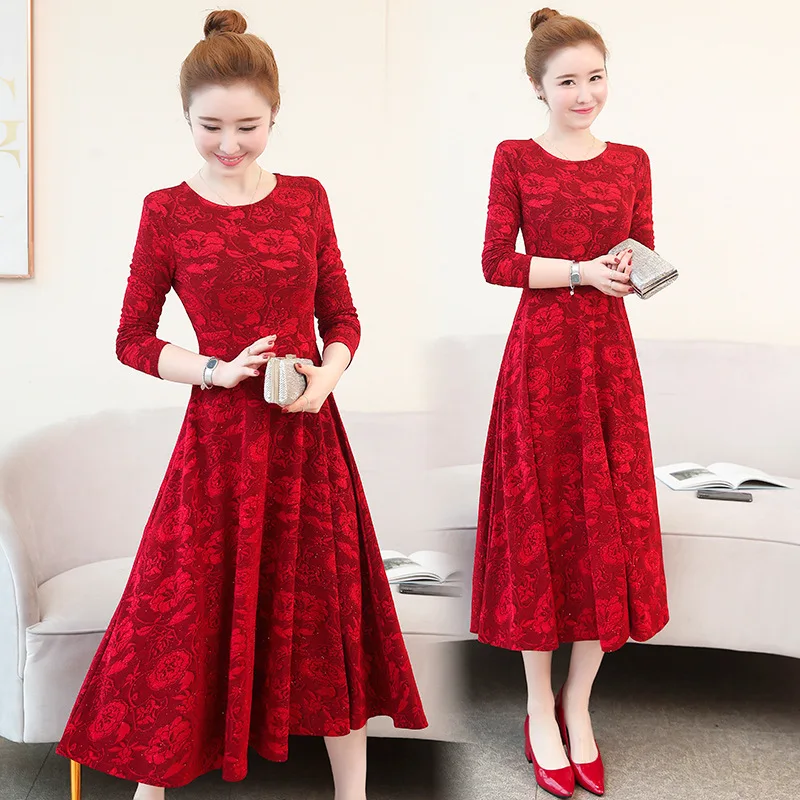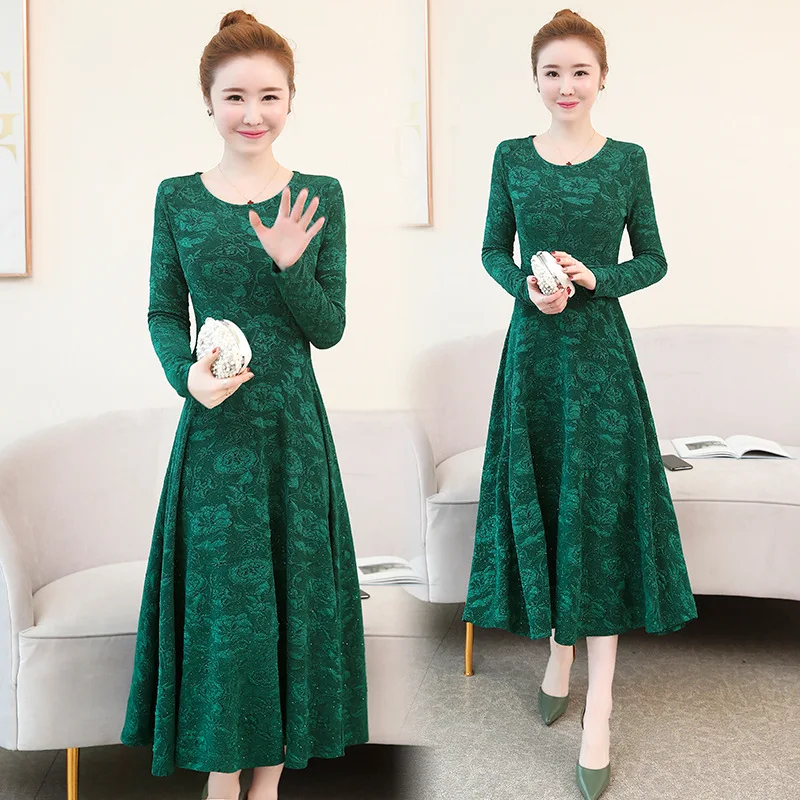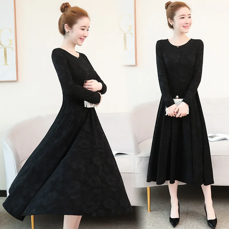 Photo Shoot 2019 Spring New Style Crew Neck Jacquard Slim Fit Big Hemline Slimming Mid-length Long-